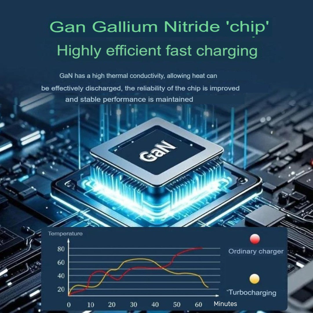 It uses advanced GaN technology to prevent overheating and battery damage, ensuring safe, efficient charging.