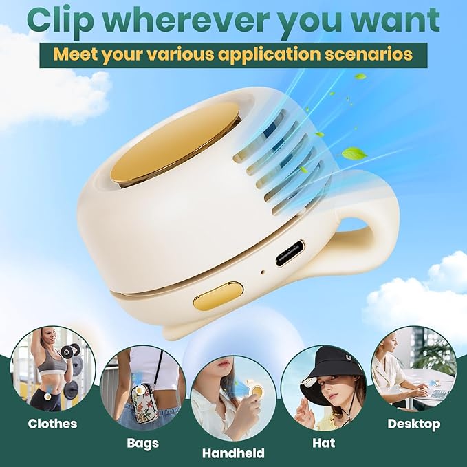 Stay cool and comfortable anywhere with a hands-free, quiet fan that clips to your bag or waistband. It's like having an air conditioner in your pocket.🌬️